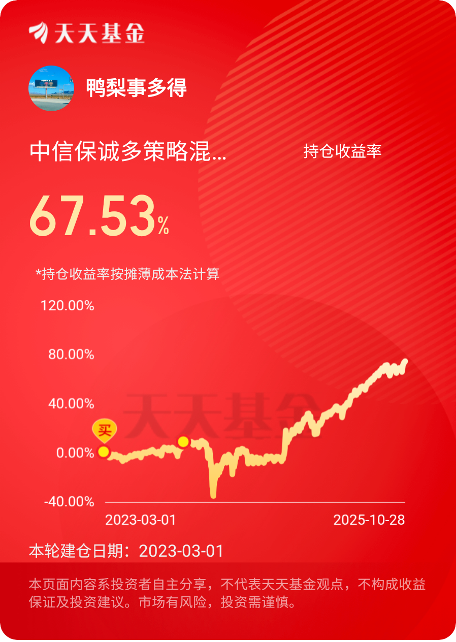 昨天提到的中短债$长城中短债债券A$ $景顺长城中短债C$ 稳扎稳打。跨月资金不断贵,跨完月后或有更强表现。中长端可以作为交易,但不建议长期持有,依然推荐$鹏扬中债-30年期国债ETF$ ,今天的#10月基金投资策略# 净值涨幅主要体现为昨日,表现目前中长债在震荡后仍有下行动力。但需注意未来谈判结果对债券的影响。股基推荐自己长期持有的一只$中信保诚多策略混合(LOF)A$ #晒收益# ,能抗跌且能跟涨。