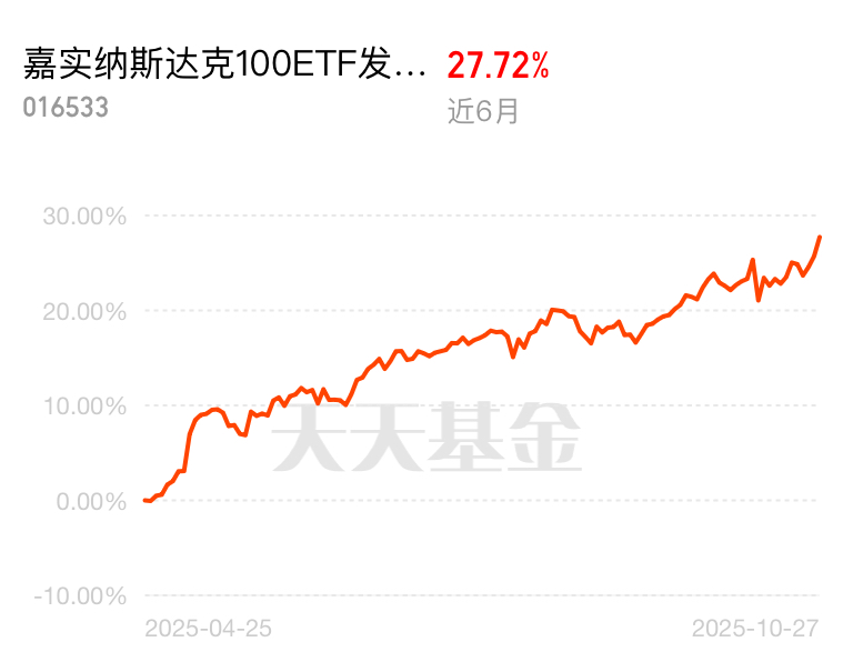 美股科技接连上涨,我也继续看好嘉实纳斯达克100,今晚更新1.60%,近半年业绩
