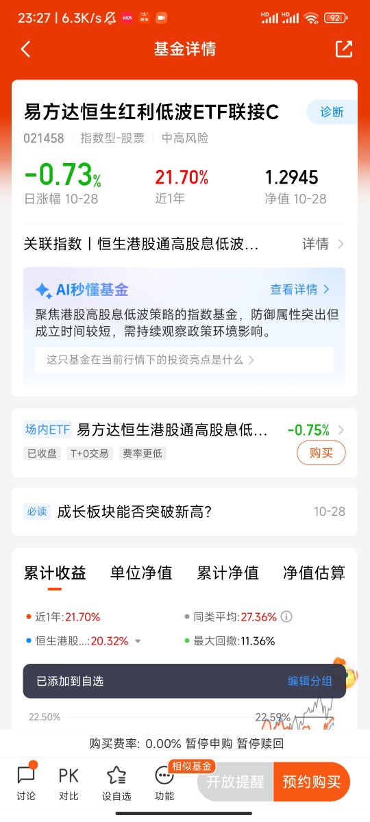 我在#热点快闪:成长板块何时修复?# 选择了“产业突破,“DeepSeek”时刻再现?” $易方达恒生红利低波ETF联接C$