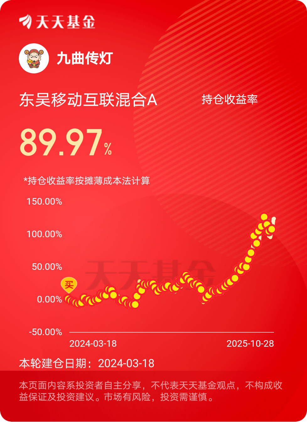 现基金资产58448.49元,盈利19698.49元。其中,融通健康产业收益率为12.36%、东吴移动互联混合A收益率为89.97%。