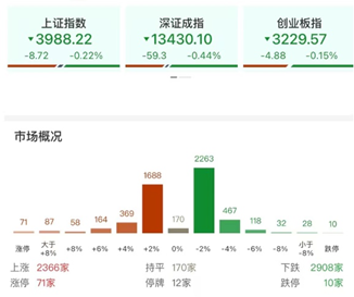 昨日市场冲高回落,沪指盘中突破4000点大关,但三大指数截至收盘全部翻绿。沪深两市成交额2.15万亿,较上一个交易日缩量1923亿。截至收盘,沪指跌0.22%,深成指跌0.44%,创业板指跌0.15%,中证A500指数跌0.54%。