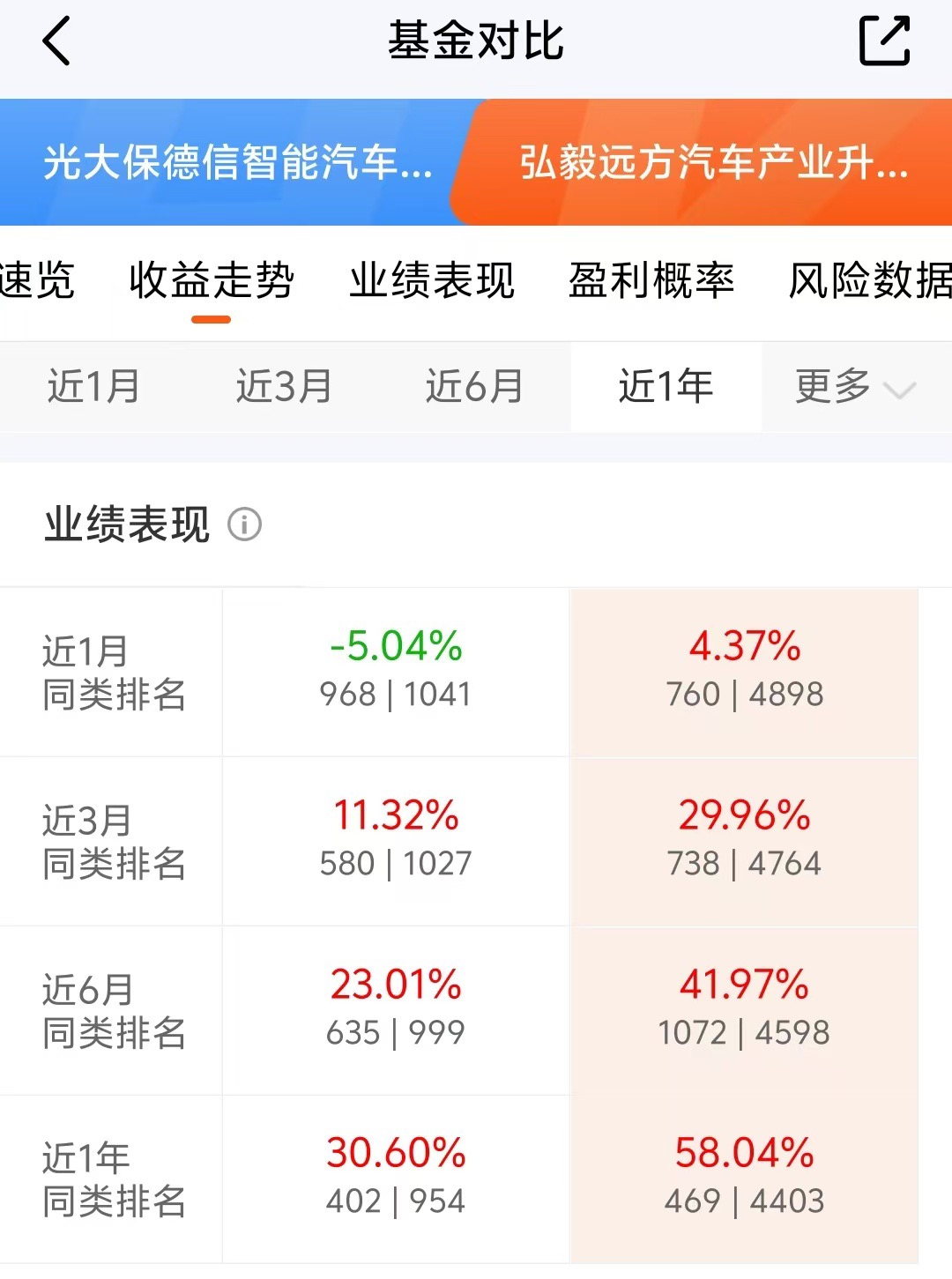 今天行情大好,三大指数起飞,我关注的弘毅远方汽车混合C也很出色,它主做算力,今天估值有一个多点,远超同类,近一年收益率高达58.04%。三季报披露后,看到持仓里全是国产算力方向,中芯国际、寒武纪这些业绩都很亮眼,我本来就更看好算力赛道,再加上三驾马车发力,长期潜力足,后面大概率还能创新高,选这种强势产品长期挣米合适。