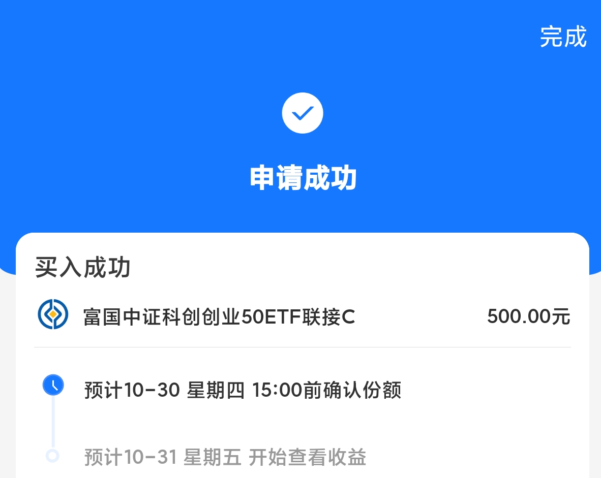 今天沪指又再次站上4000点,最近科创50没有啥像样的大调整,今天科创50小幅回调,自然要把握一下进行加仓500元的$富国中证科创创业50ETF联接C$ ,继续看好科创的向上大趋势,以及高弹性,而且,科创50指数的核心成分是近期最强方向之一的半导体,科创50也是科创市值Top50,适配当下风格,在近期市场风险偏好提升的大方向下,攒份额做多是优解。