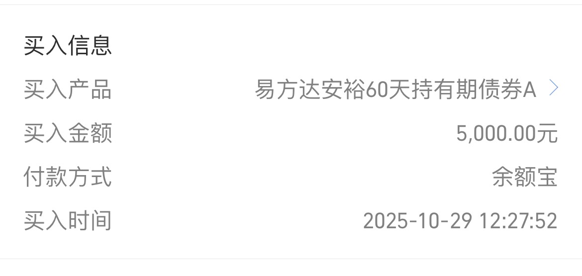 $易方达安裕60天持有债券A$今天加仓5000元今天个人继续加仓一点稳健底仓——
