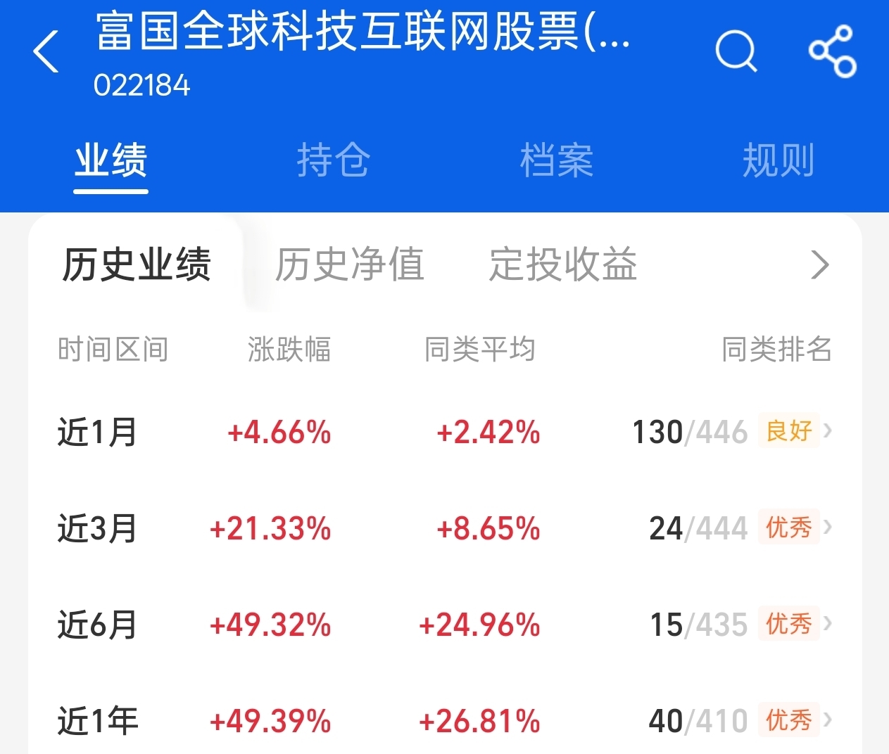 如果你关注全球科技互联网赛道,$富国全球科技互联网股票(QDII)C$ 值得一看。它的短期业绩弹性很突出,近一年收益率49.39%,在同类中排名靠前,充分体现了科技互联网板块的高成长属性。