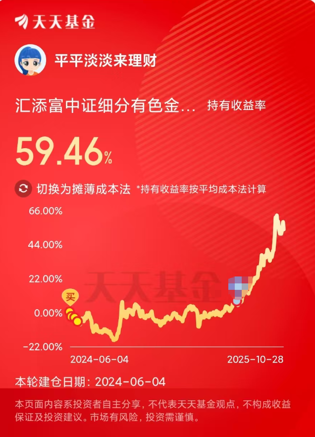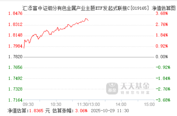 今天市场行情有色金属赛道发力,我看$汇添富中证细分有色金属产业主题ETF发起式联接C(OTCFUND|019165)$截止目前估值收涨3+%,这一波回暖上升行情拿稳吃肉了。