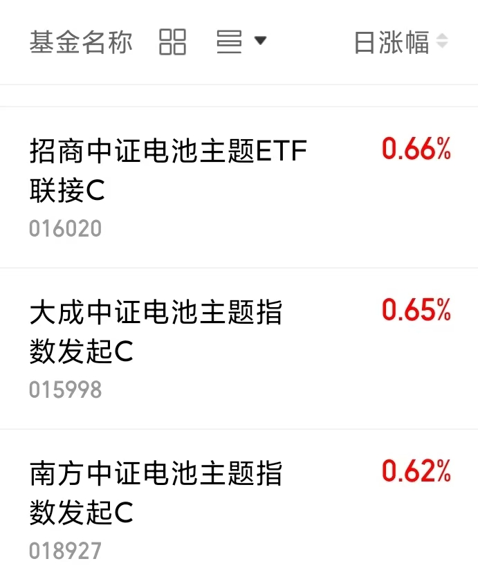 感觉今天的电池赛道发力,又是迎来新的一轮上涨行情了吗~这一波回暖反弹感觉还是很香的。我看$招商中证电池主题ETF联接C(OTCFUND|016020)$昨天收涨0.65%。