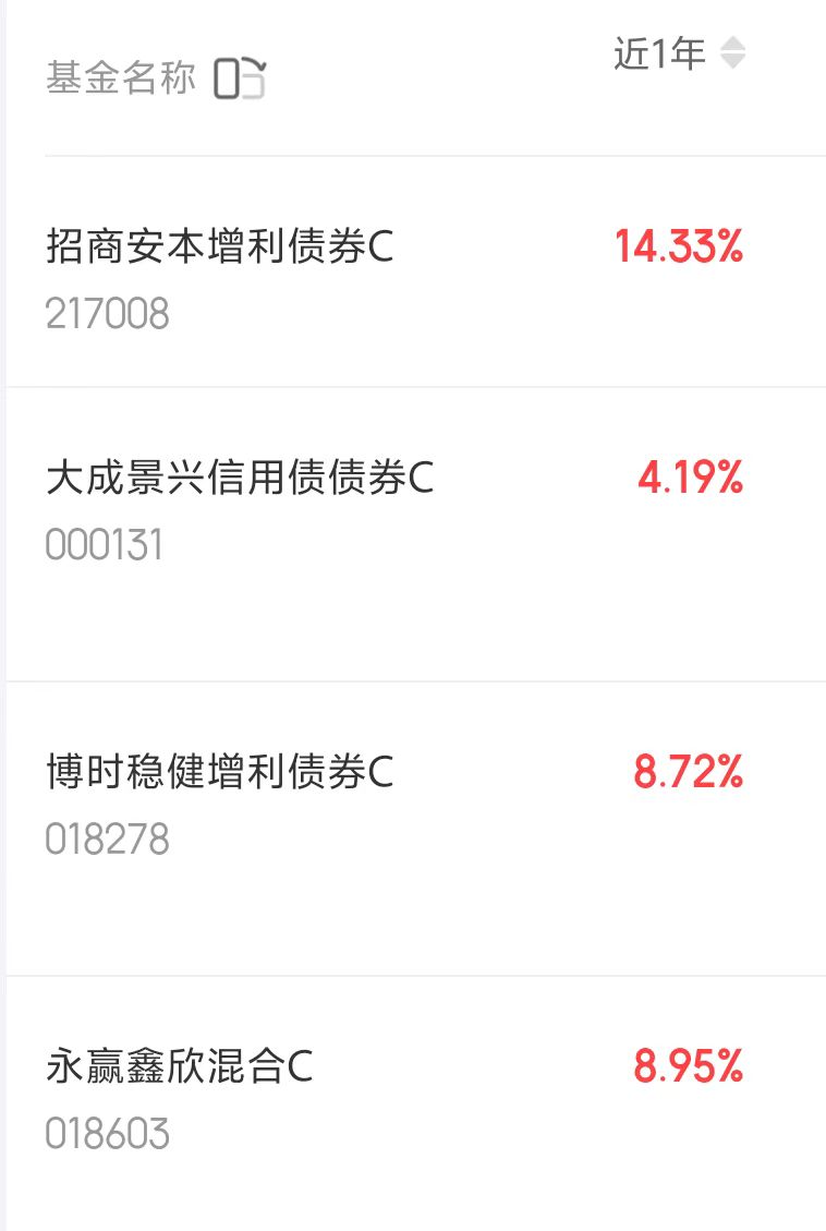 债市最近表现还不错,大盘也涨了不少,固收+收蛋还是挺多的,来看看近一年收蛋情况!$招商安本增利债券C(OTCFUND|217008)$近一年收益率14.33%