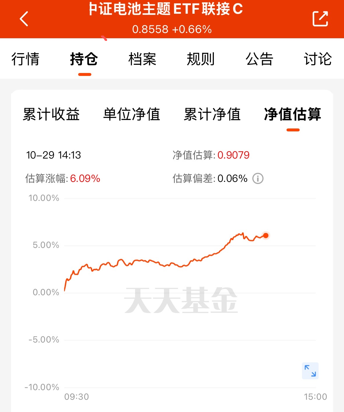 电池板块最近太猛了!$招商中证电池主题ETF联接C(OTCFUND|016020)$昨天又涨0.66%,近半年直接狂飙71.54%,今天估值+6%,宝子们头晕不!三季报窗口期宁德时代营收增9.28%,亿纬锂能、国轩高科这些龙头全两位数增长,储能需求直接拉满!固态电池技术突破加速量产,宁德时代、比亚迪都喊话2027年装车,这波技术红利,中长期我持续看好!