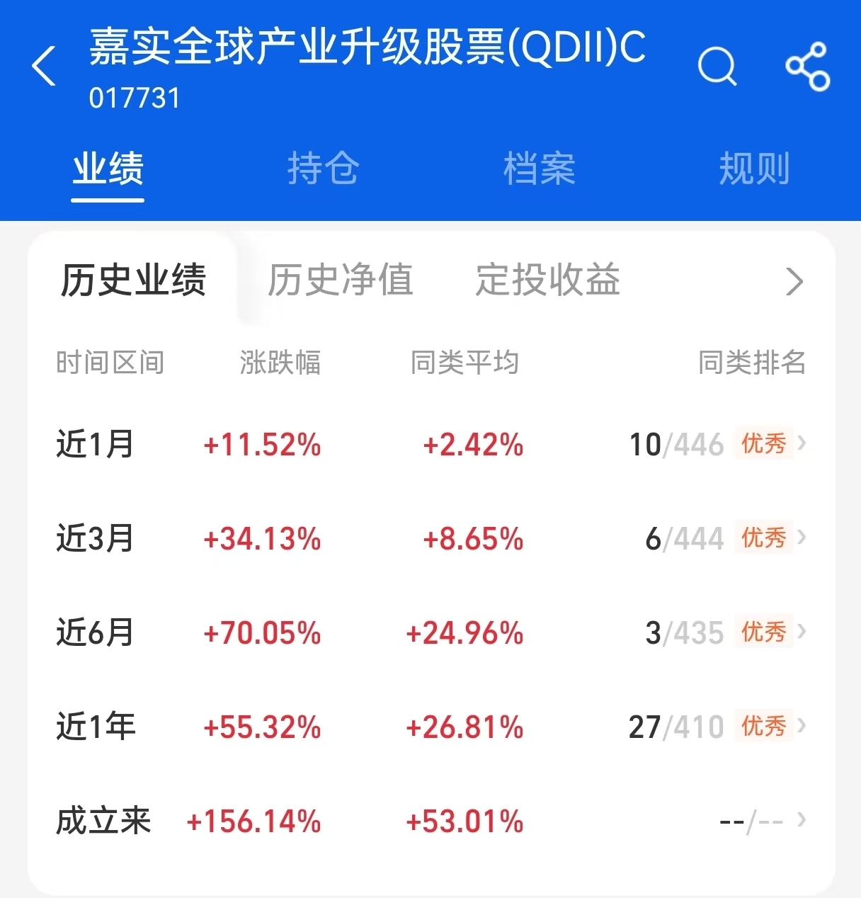 $嘉实全球产业升级股票(QDII)C$ 表现不错从业绩来看,它在同类产品中排名靠前,昨晚单日涨幅达2.53%,近一年收益更是达到55.32%,,目前单日申购限额为1000元。它的优势在于不局限单一市场,而是精准聚焦全球科技核心赛道,持仓中既包含英伟达、微软、谷歌等全球科技龙头企业,也覆盖了AI、半导体等前沿领域的海外领军者。结合当前科技板块的发展态势,后续仍有值得期待的表现。