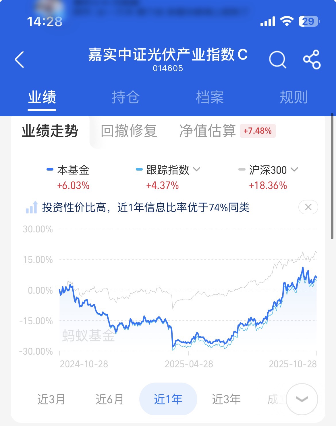 今天光伏大涨呀,这支$嘉实中证光伏产业指数C$更是上涨7.48%,大超预期了,先