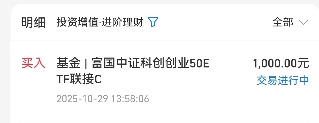 加仓1000的$富国中证科创创业50ETF联接C$,今天市场重回4000点,创业
