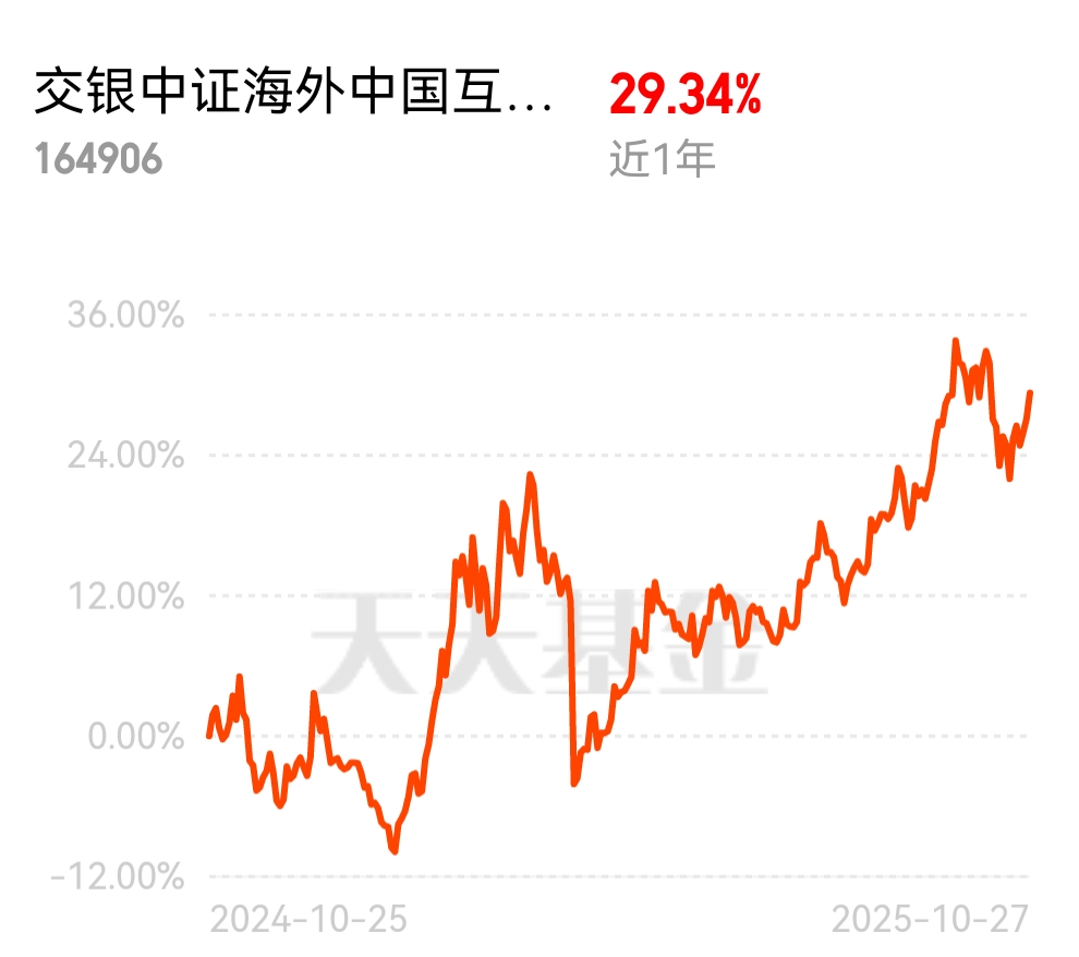 海外互联网走势稳健,波动小,估值不高,长期持有体验感不错。$交银中证海外中国互联
