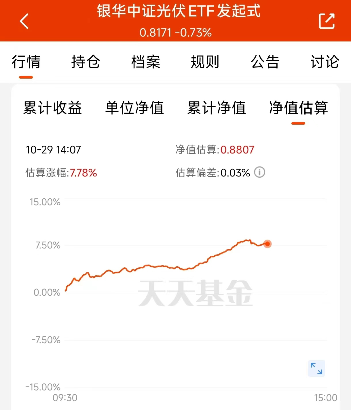 光伏今天太给力了,板块指数涨超7%,我拿着的这个也跟着大涨,今天涨这么好,你们都