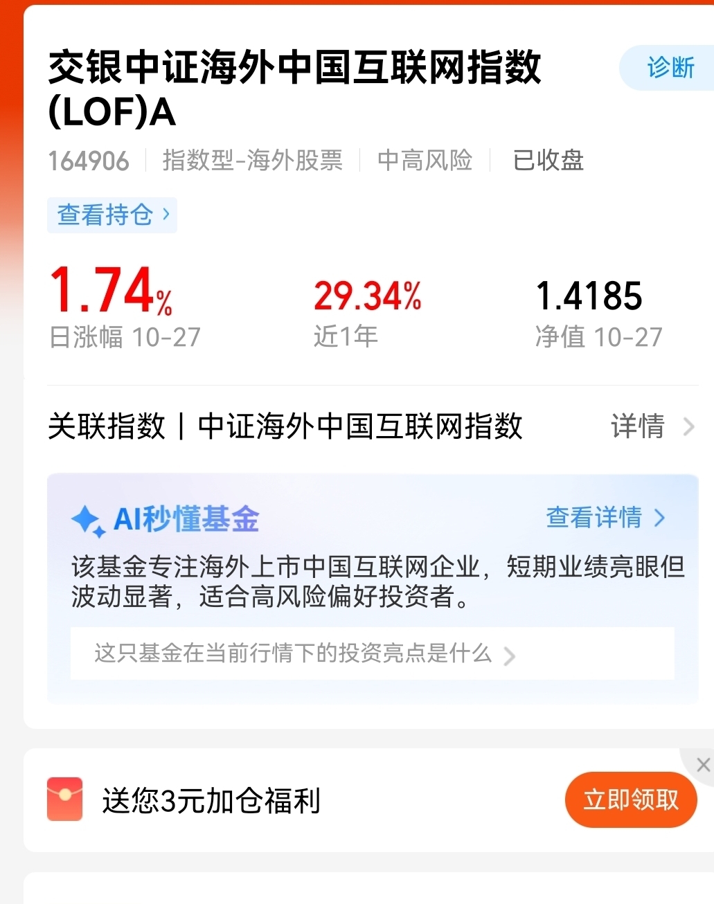 我在选择了“加仓”当前海外互联网潜力大,交银指数基,让普通人也能分享海外互联网红