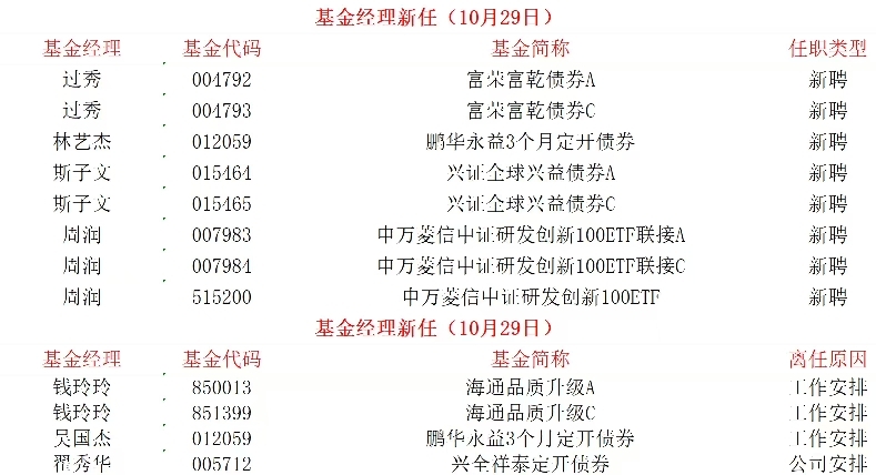 新聘4人,涉及8只基金;离职3人,涉及4只基金。