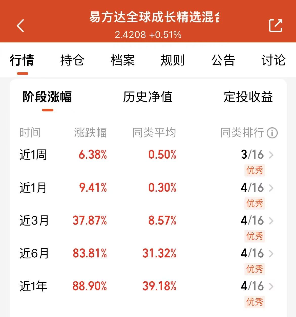 昨天美股又反弹上涨啦,而今天的A股也是高开高走,今天又可以坐等更新吃肉了,我最近比较看好多市场的,这样可以分散风险,易方达全球成长精选混合(QDII)人民币C是跨市场布局的,美、港、A三地资产,精选科技、新能源等成长赛道,分散风险的同时也保留了成长性,经理调仓也灵活,年化收益率88.9%,我继续看好这个方向了!