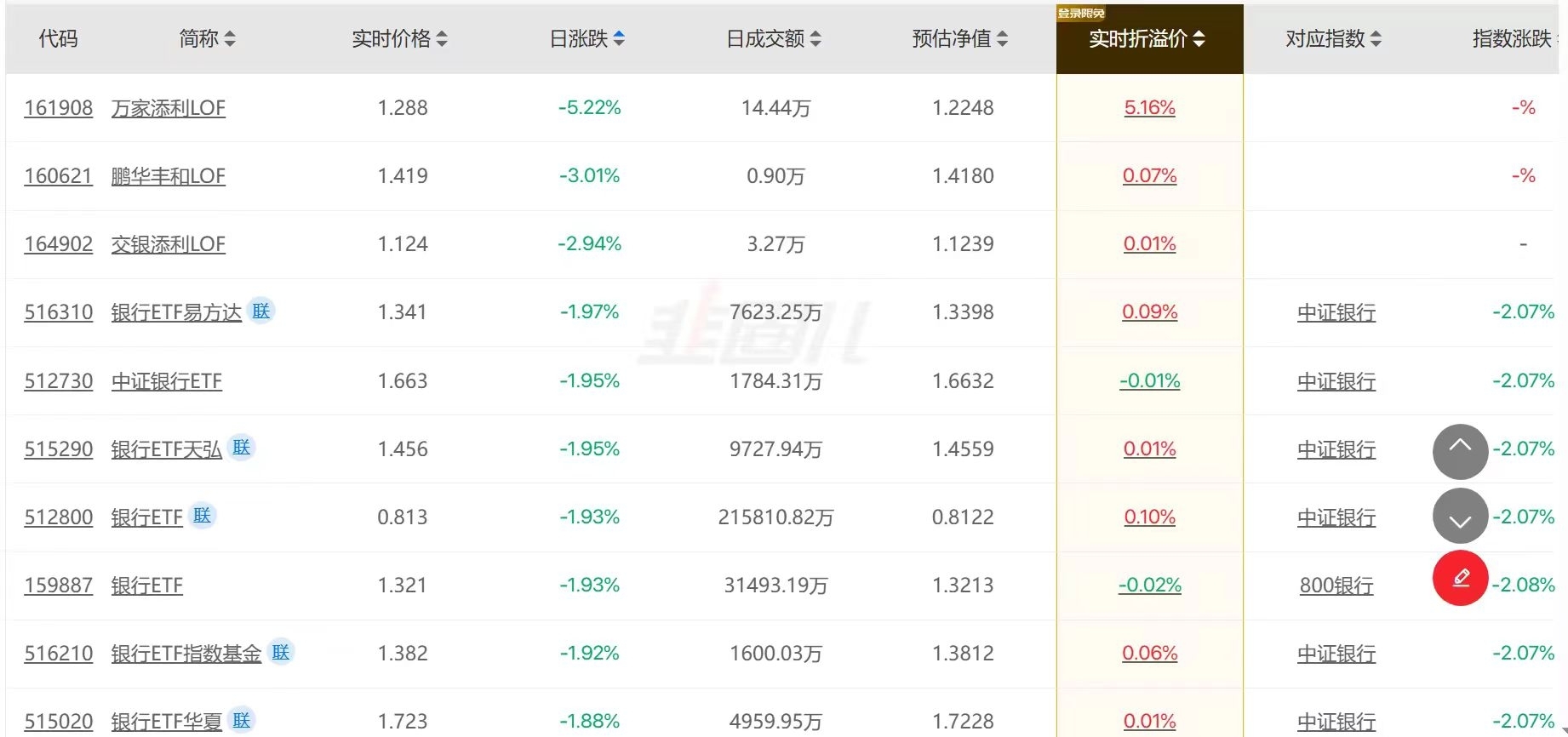 【跌幅榜】银行