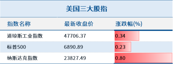 隔夜,美股三大指数全线收涨,均连续第三日创历史新高。