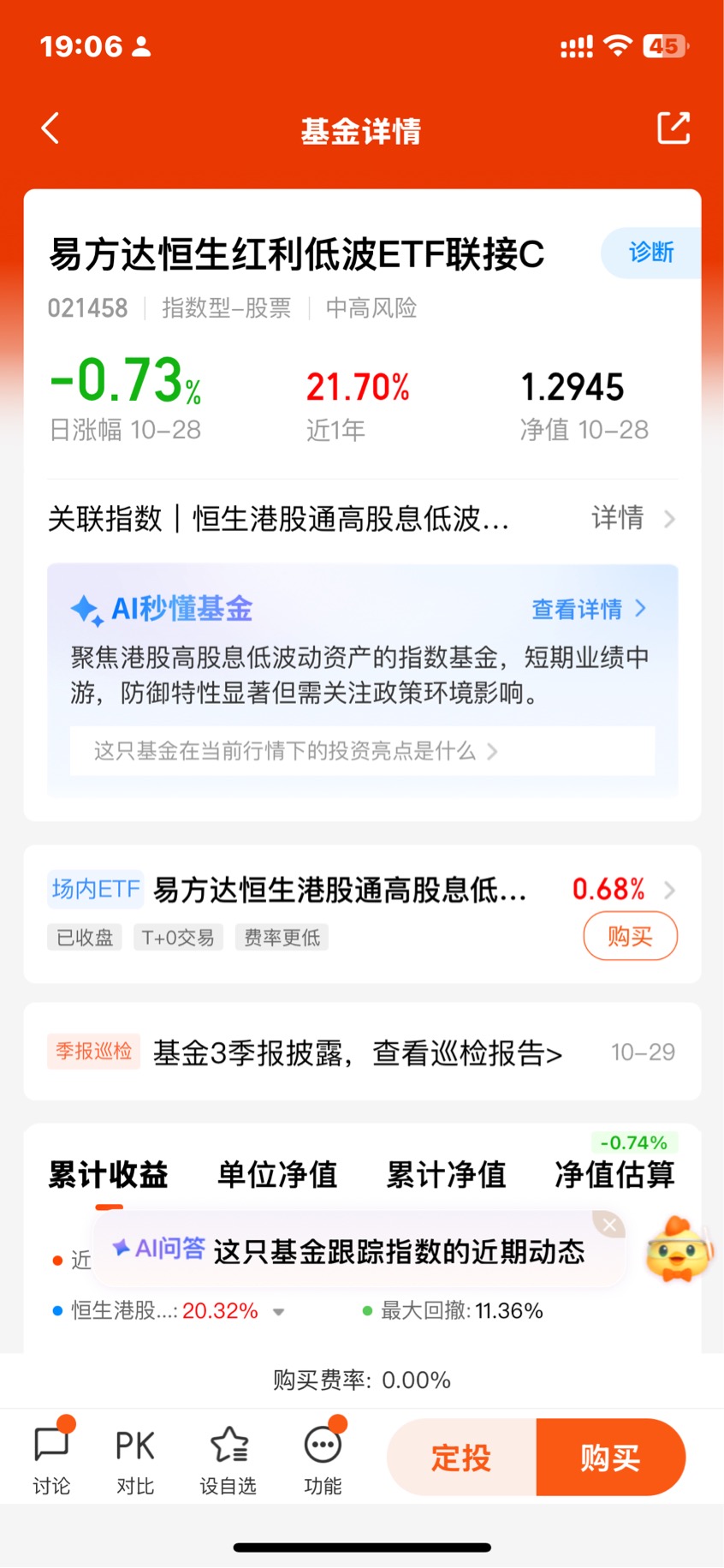 从资产配置的角度上说,港股市场本身就有很高的战略价值。港股红利更是值得配置的稀缺性标的。另外多说一点,这个产品都是通过港股通配置港股,所以成分股都已经通过一定的基本面和流动性筛选,在稳定性方面,不用过多担心。@易方达基金