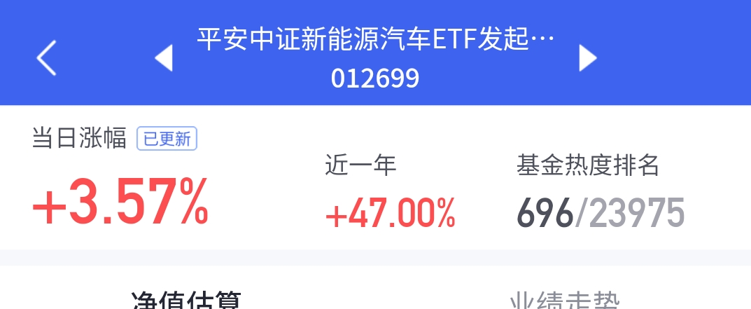 $平安中证新能车ETF联接C$ 更新了涨了3.57%