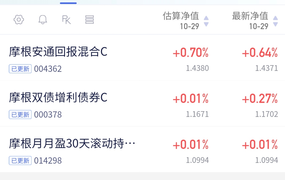股债双收的日子就是香呀!果然不能轻易看空这波牛市,今日A股市场再次强势大涨,上证指数稳稳站上4000点,创业板指数涨幅近3%,可转债更是跟随趋势,截止收盘涨幅力度高达0.96%,今晚混债将会全面吃肉,收获大蛋满满,而债券市场也走出独立趋势,从盘面来看,利率债、信用债涨幅力度都适中,所以今晚纯债将会稳稳收蛋,期待这波行情继续延续,来看摩根家今晚收蛋情况: