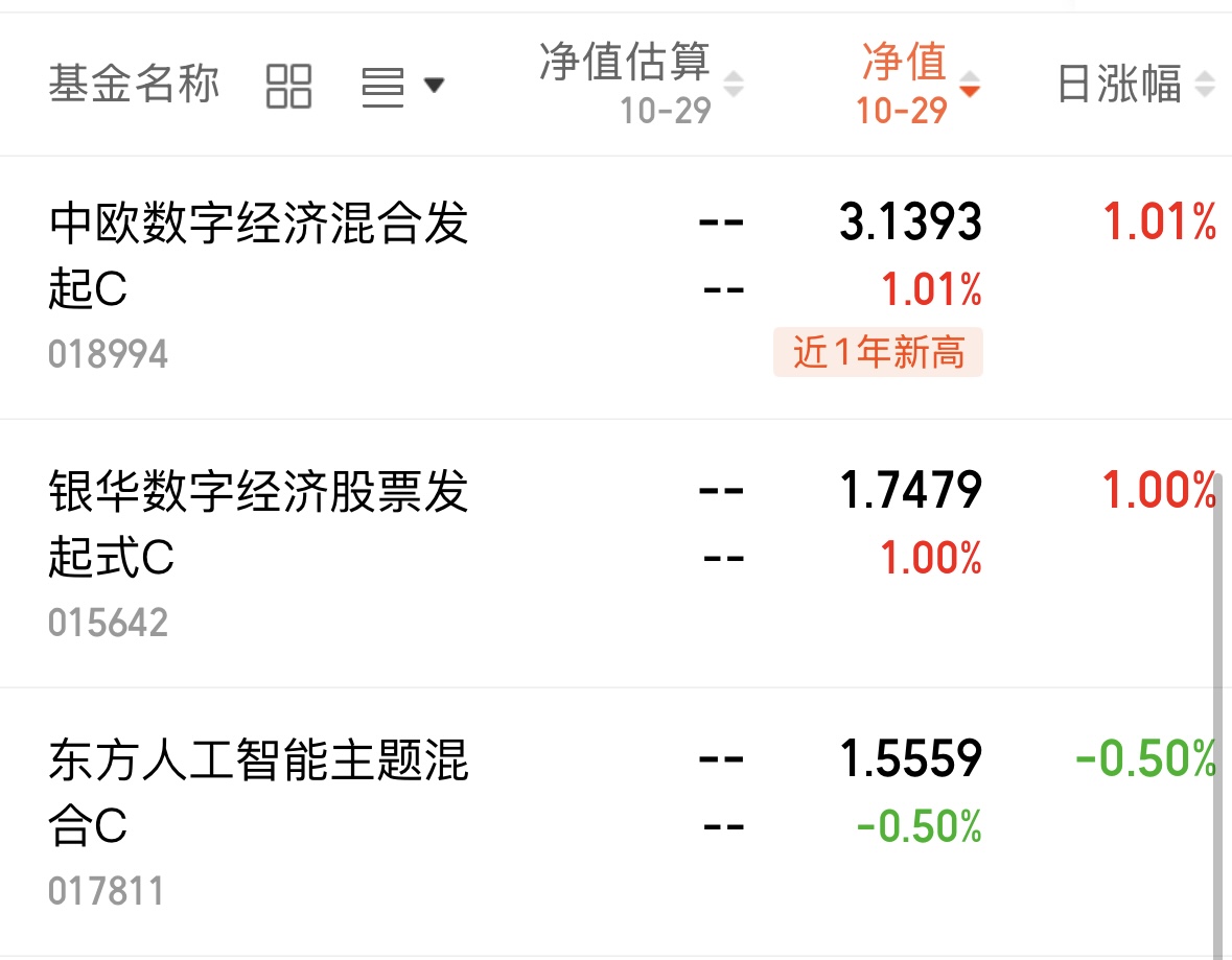 今天行情真的不错,沪指站上4000点,还有双方会晤的好消息,直接点燃权益市场!$中欧数字经济混合发起C(OTCFUND|018994)$更新+1.01%,已经创了近一年新高,今年以来149%的收益率嗷嗷领先。