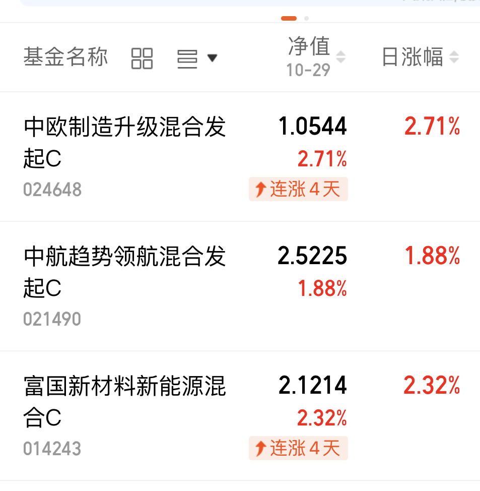 $中欧制造升级混合发起C(OTCFUND|024648)$布局汽车产业链和高端制造,借着新能源行情东风,今天涨了2.71%。