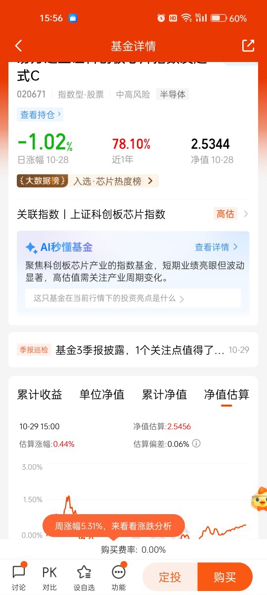 10月份以来,成长板块经历了明显回调,我定投持有的易方达上证科创板芯片C(020671),10月10日大跌6.24%,10月14日大跌4.98%,10月17日再次大跌4%,三个交易日就跌了15个百分点,是倒车接人还是行情走弱呢?我觉得涨多了调整消化这很正常,今年以来上涨68.01%,跑赢同类基金29.11%的平均涨幅,在3418只同类基金中排名居前;这只基金2024年1月31日成立以来累计上涨153.44%,非常棒!我觉得四季度可能延续震荡上行态势,每次回调都是倒车接人机会,我把该基金选作我的年度长线基金。原因有四: