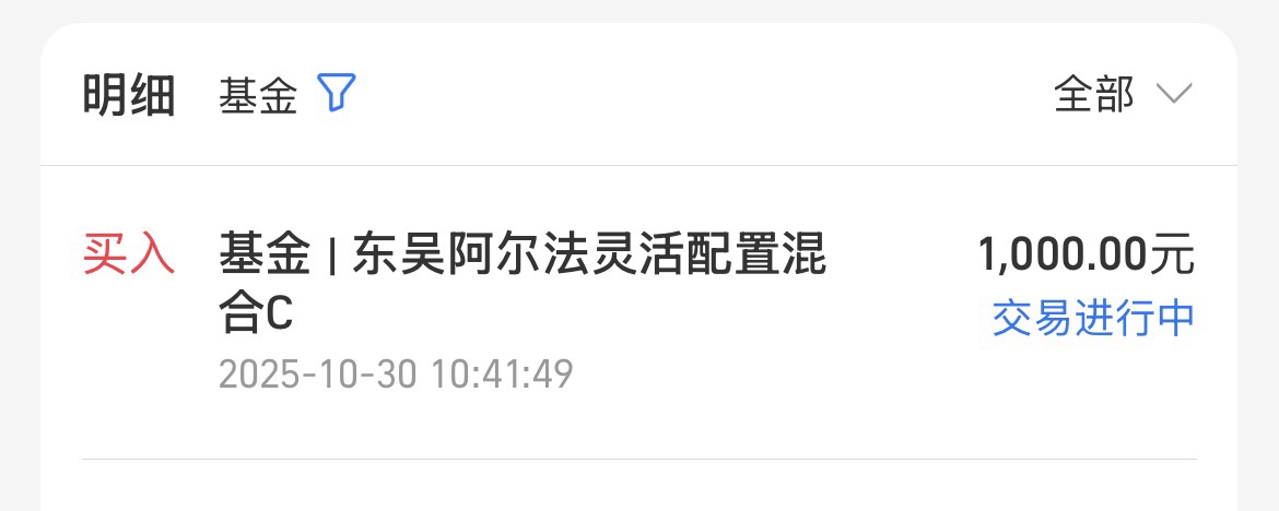 今天继续加仓$东吴阿尔法灵活配置混合C$1000元这支东吴阿尔法混合C我上周一买