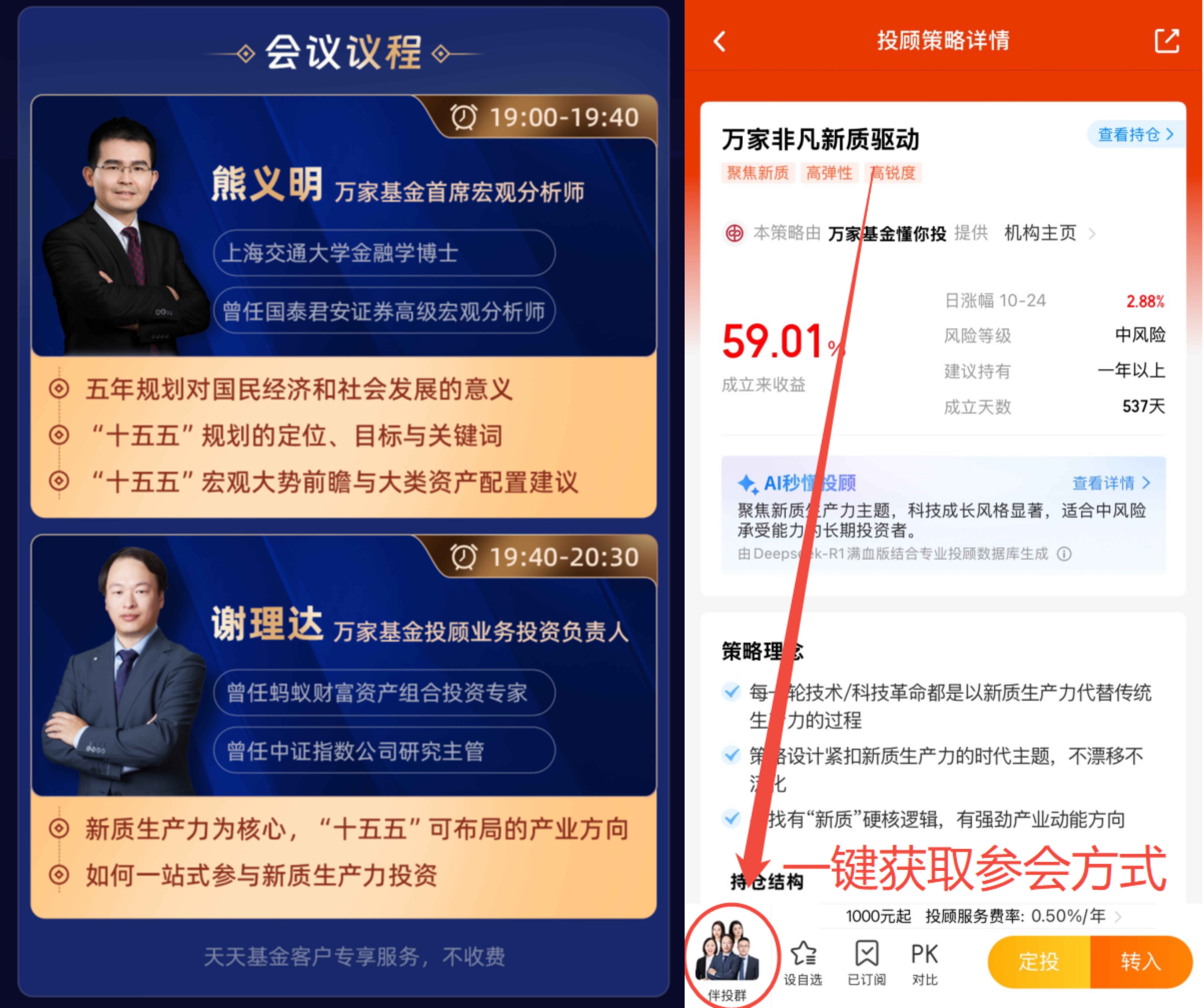 大家可以点击一下这里的链接 $万家非凡新质驱动$, $万家非凡智汇选基100份$