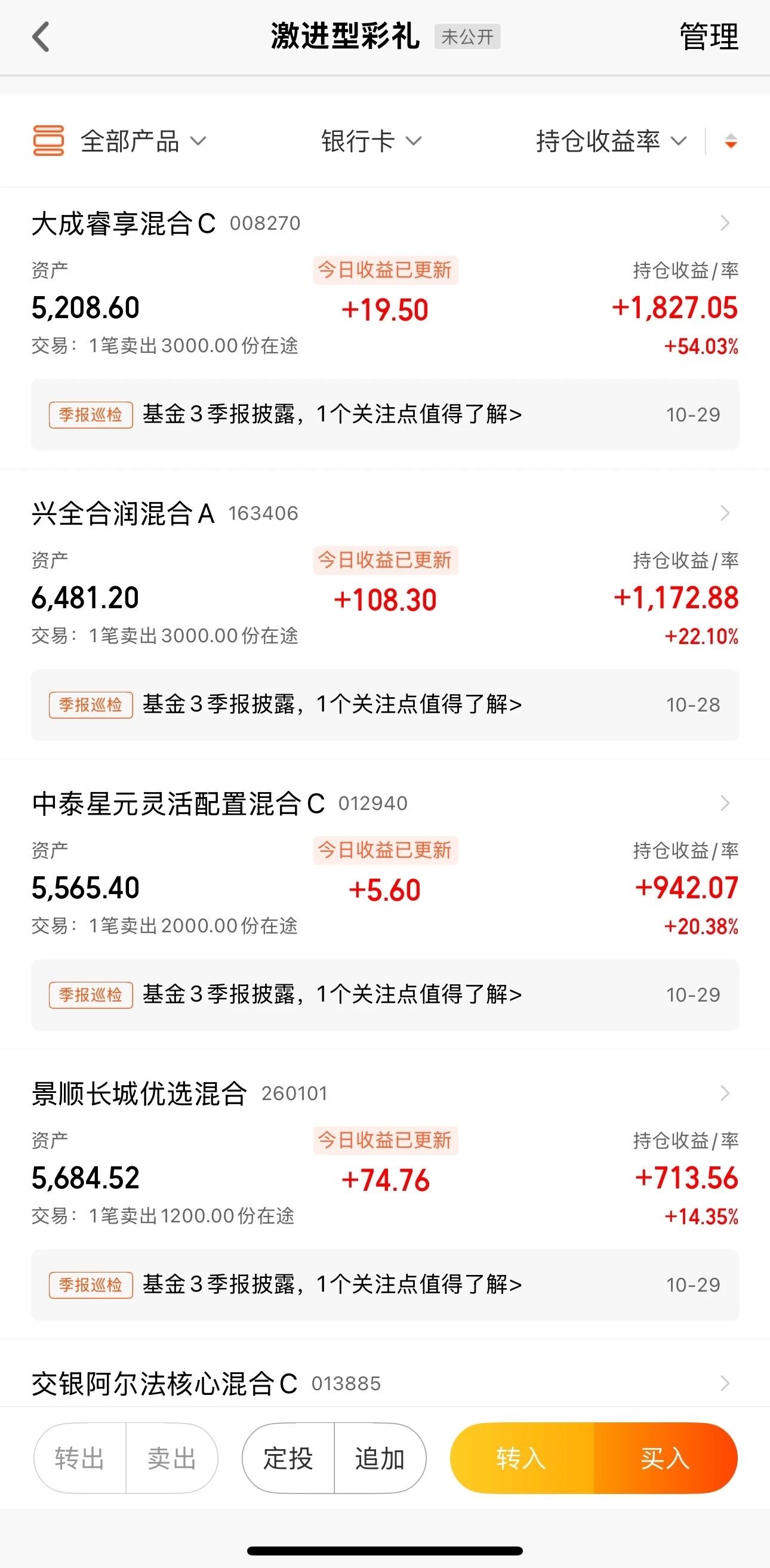 PS:今天把三年半之前给家人推的主动权益基金彻底清仓换了几个新产品(都是我持有的投顾的持仓),也算是重新出发了。