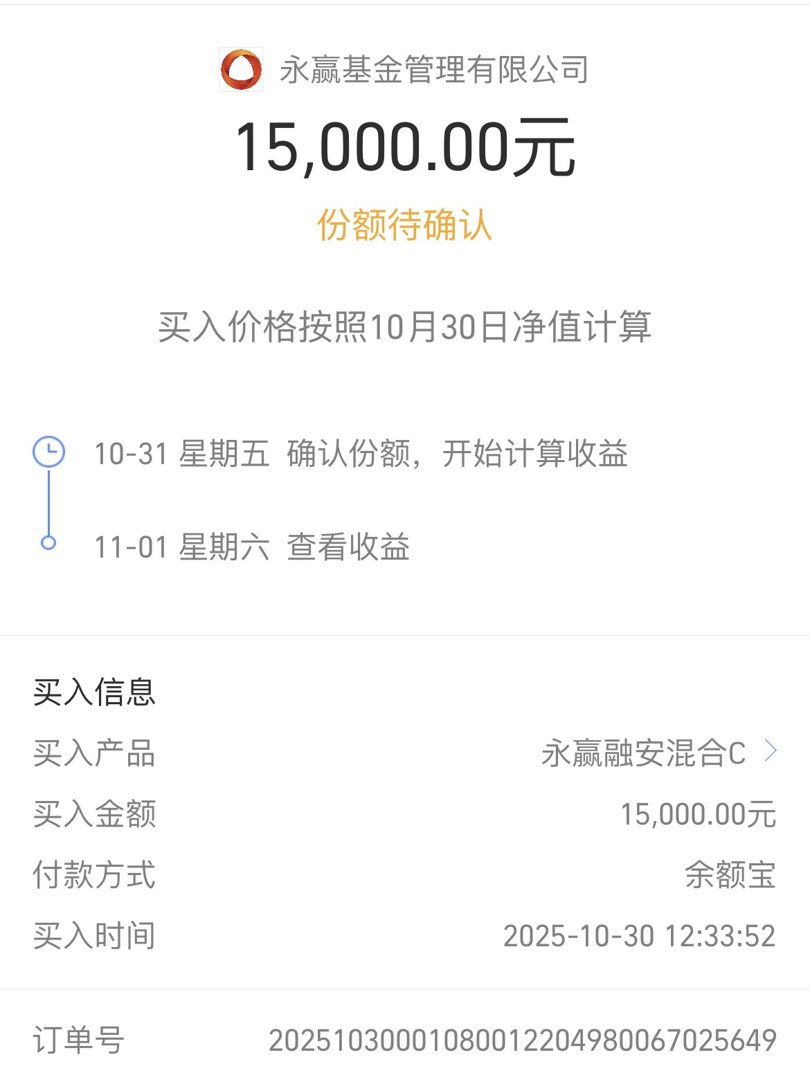 #美联储再次降息!12月降息与否难料# 今天市场小幅波动,板块轮动加快,科技回调,电池新能源上攻,市场处于过渡期,刚发现了一个不错的,现在盘子小,但业绩是真杠杠的,永赢融安,这只持仓分散,刚好可以平滑风险,今天就先建个底仓咯