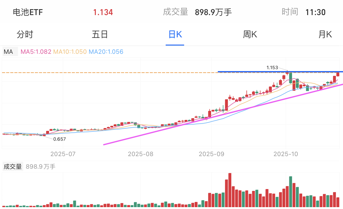 人形机器人、电池近期一直震荡上行,最近在大幅上涨后回落,这几日守住关键上涨趋势线并止跌回升,电池刚好靠近前高压力位,如果成功突破,那么迎来新行情。人形机器人徘徊不前,继续盘整。