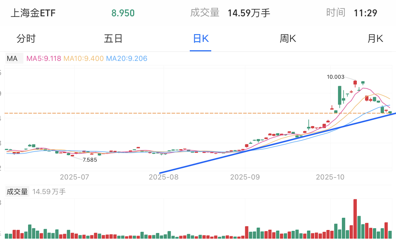 今日加仓1000。近期金价在突破高点后出现短线急跌,但仍处于长期上行趋势。随着美联储降息、全球地缘风险持续发酵,市场避险需求逐步回暖。同时,美元指数震荡走弱,机构资金持续流入黄金ETF,为金价提供了坚实支撑。近期股市波动,避险资产的价值凸显。黄金跌幅已明显收窄,逐步企稳,新一轮上行周期或在酝酿之中。此基紧跟上海金基准,费率低,是震荡市中平衡风险、稳健增值的优质工具。本人逢低布局。(非投资建议)