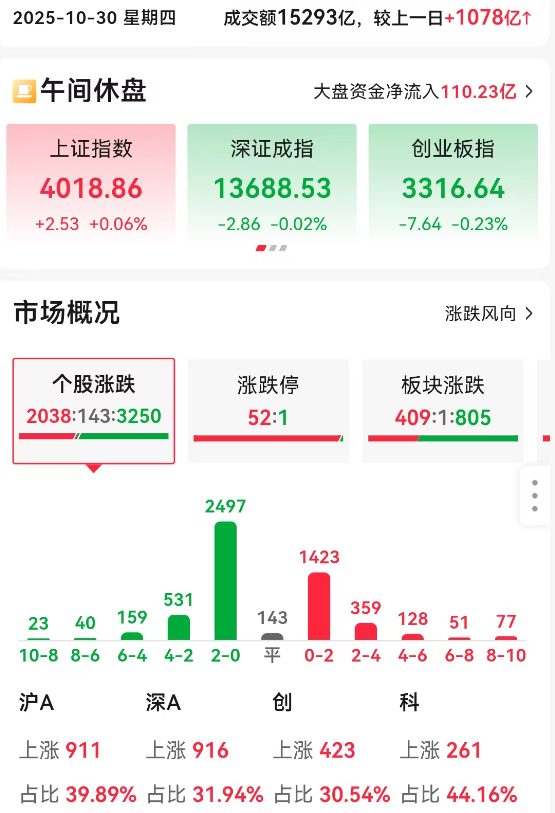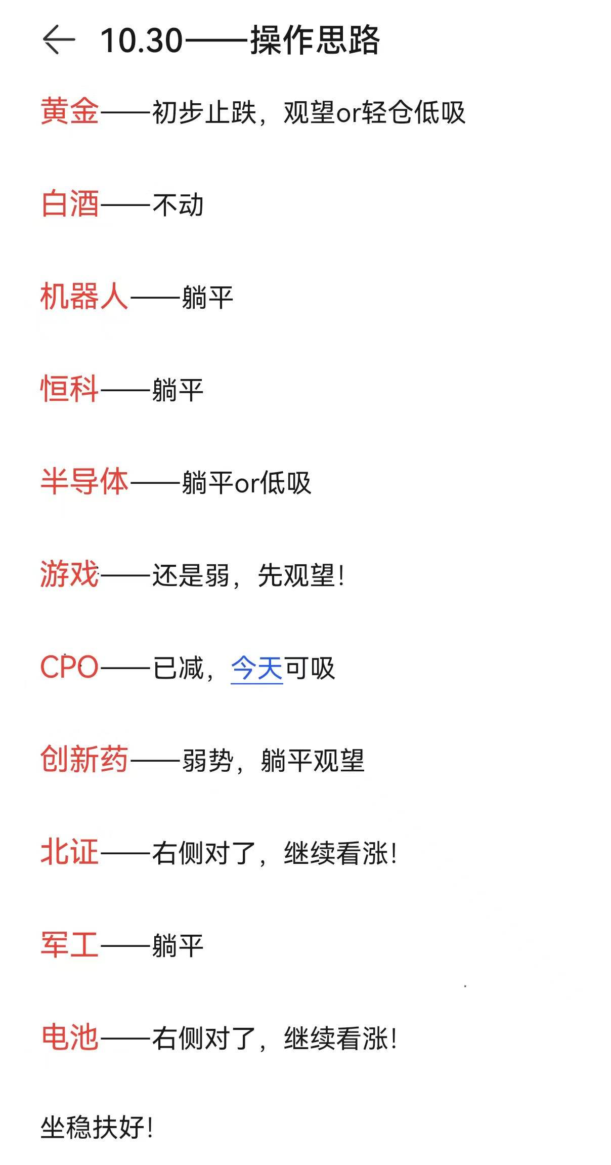 今天(10月30日)A股三大指数震荡分化,沪指微涨0.06%,深成指、创业板指微跌,北证50指数大涨2.05%。昨晚美联储降息25基点,今天市场热点以量子科技、电池等为主,但仍有超3200只个股下跌。港股恒指午盘涨0.54%,有色金属板块领涨,在休盘期间美股三大指数期货有一波快速走低,悉数转跌,目前正在修复中,A股港股午后开盘一波急跌,有点吓人是不是?别急,洗牌呢!那接下来怎么操作!