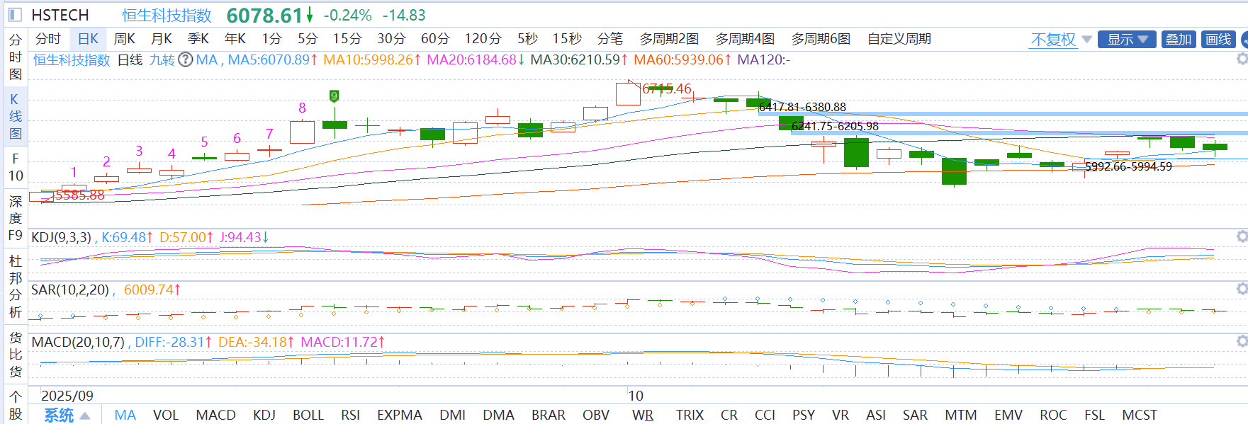 恒生科技:早盘震荡,成分股涨跌分化,盘中受期指消息面影响,跳水严重,不过跳水也看得出来有承接,麦爸躺平。