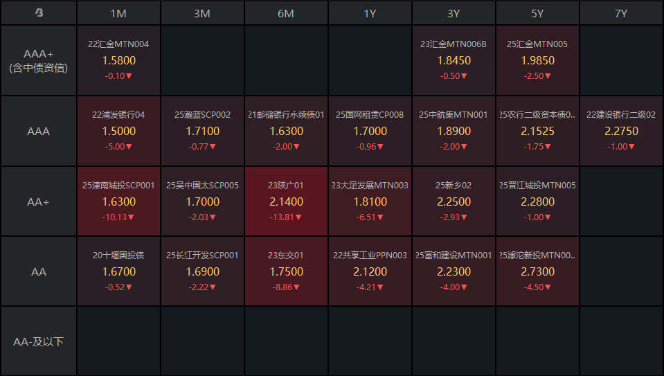 信用债:晴,其中城投债晴,产业债晴,二级资本债晴,银行永续债晴,商业银行债多云