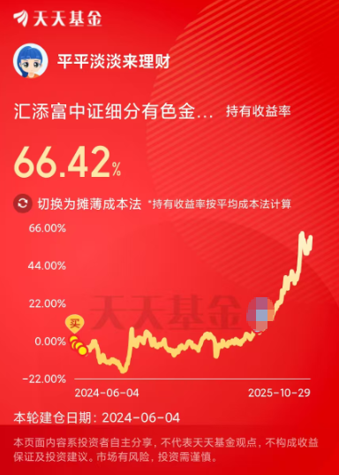 家人们四季度的有色金属板块也太香了吧!咱就说今天震荡行情是不是反而凸显出有色金属赛道的优势了呀,我看$汇添富中证细分有色金属产业主题ETF发起式联接C(OTCFUND|019165)$截止目前估值收涨2.15%,目前我持有收益率已经有66.42%,咱就说四季度拿稳这里是不是开心吃肉咯~