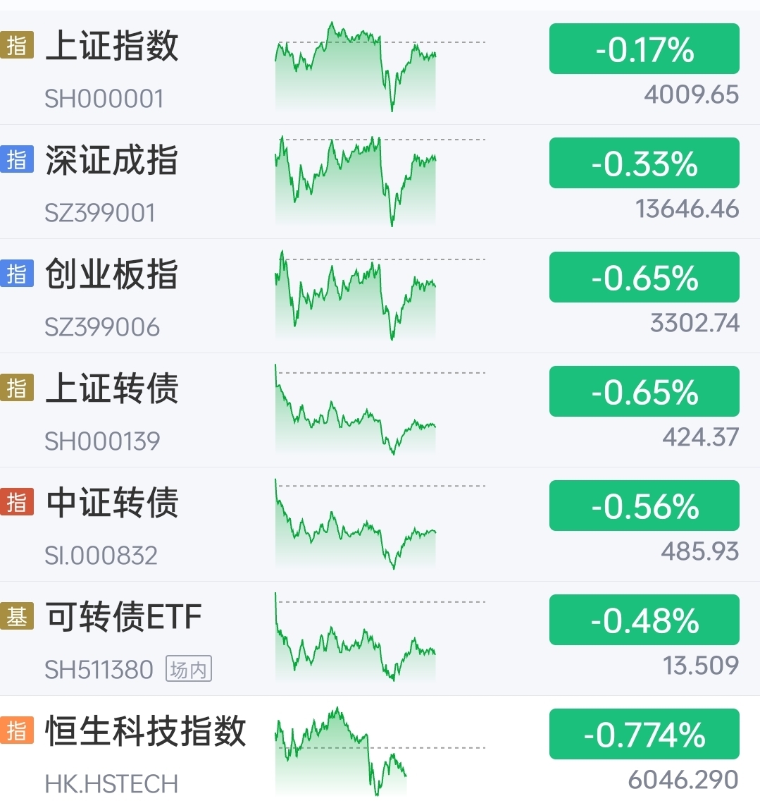 截止到发文上证指数-0.17%,深证成指-0.33%,创业板指0.65%,转债雨天,恒科-0.774%!月末了马上,温柔一点,昨天下的少了!