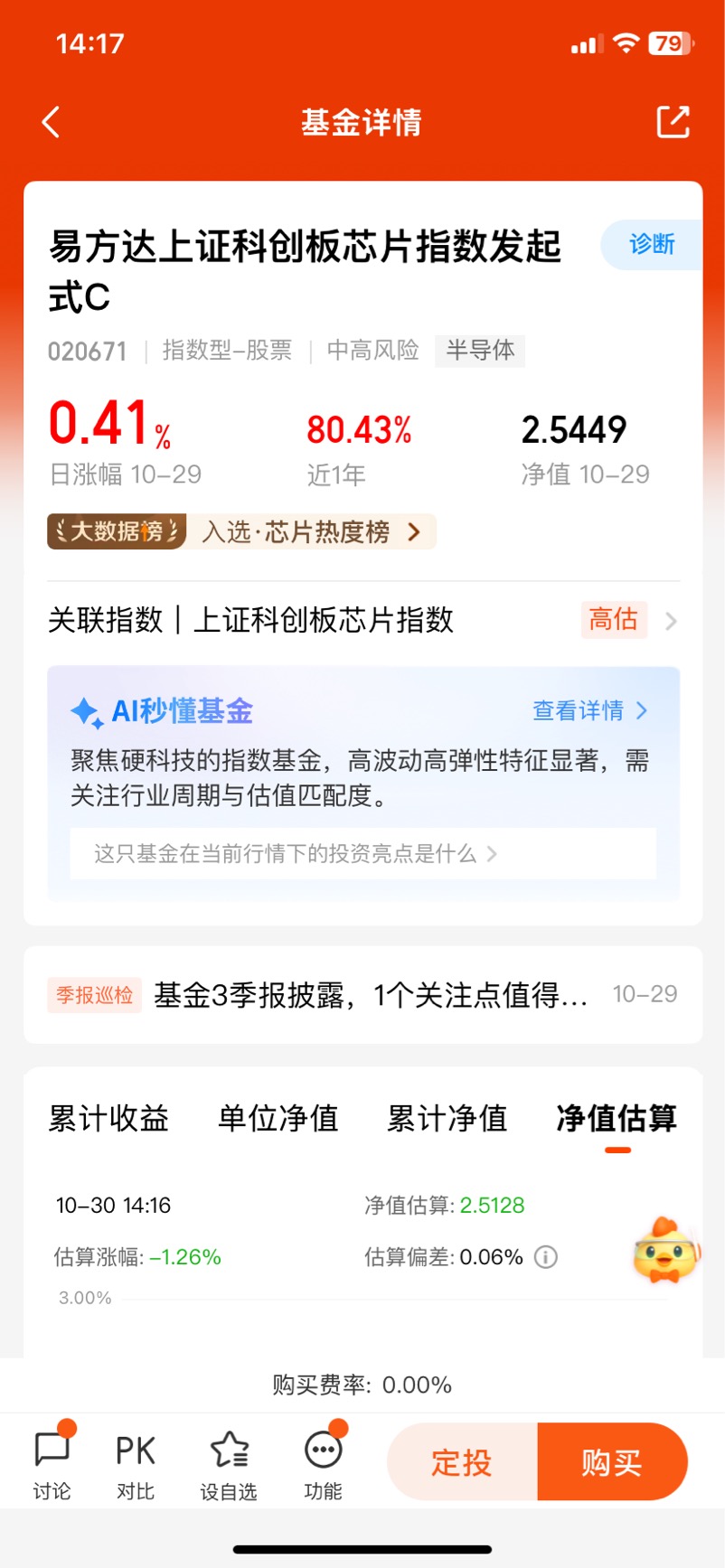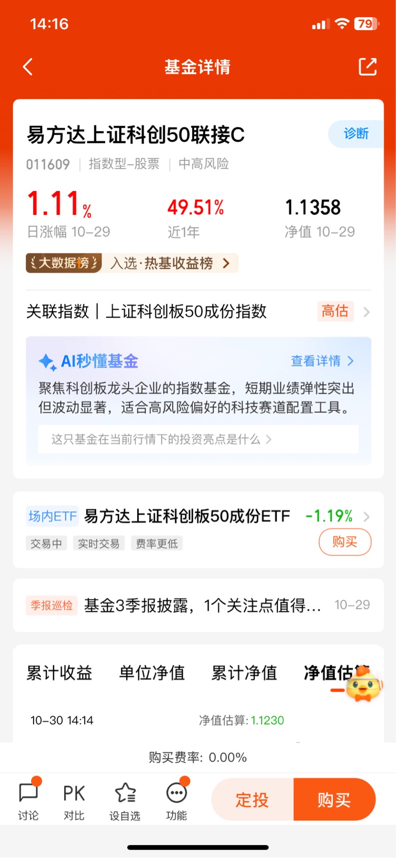 十月以来的回调我认为是逢低布局成长板块的好时机,大家不妨关注$易方达上证科创50联接C$ $易方达上证科创板芯片指数发起式C$ $易方达瑞享混合E$ 基金,积极参与,不错过成长板块的行情!