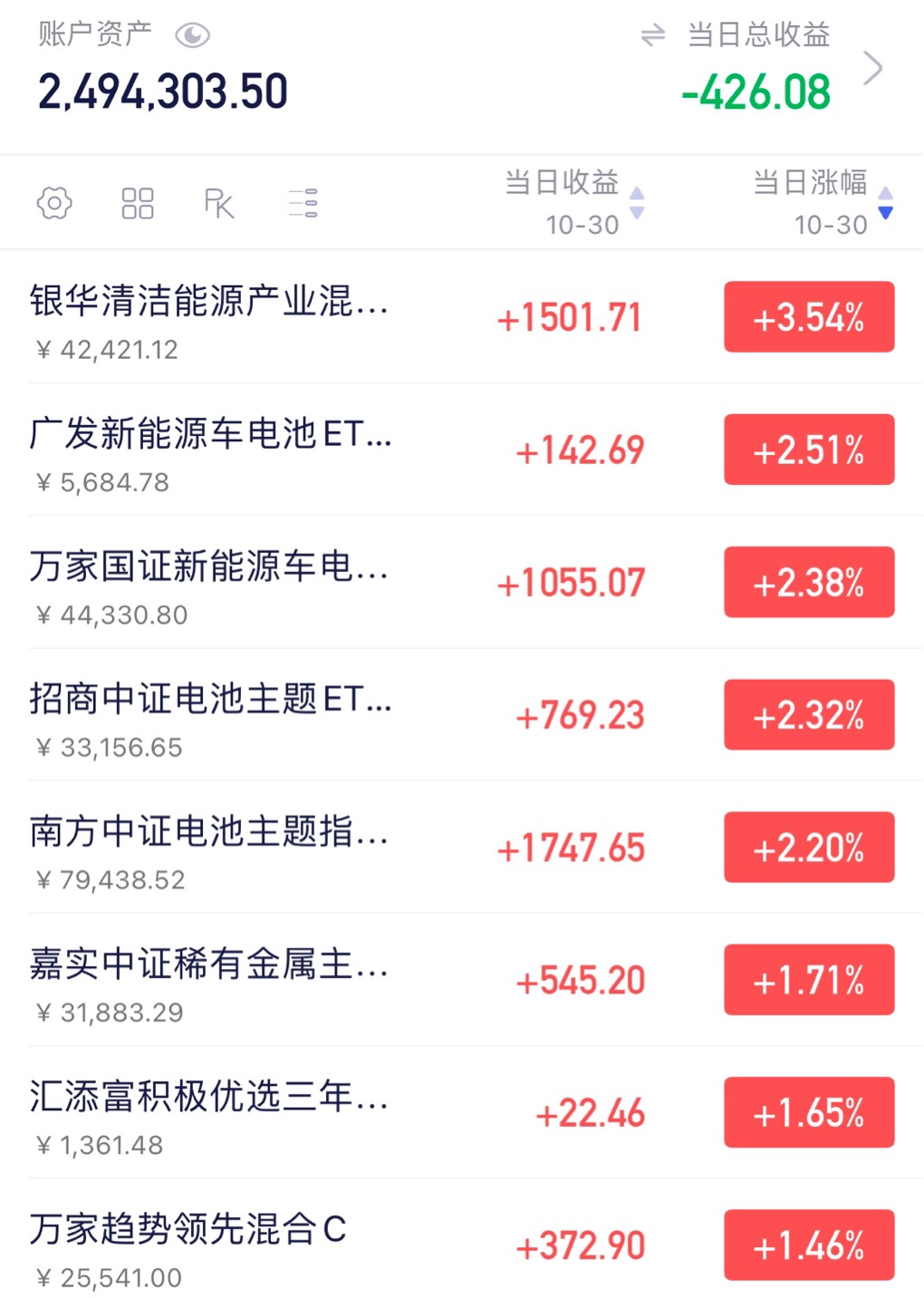 3. 科技混合,上车5000,$国金新兴价值混合C$ 今天科技板块集体回落,个人趁调整机会上车一次,这是一个专注于集成电路、CPO、半导体芯片已经有少量的港股通龙头,配制而成的混合基金