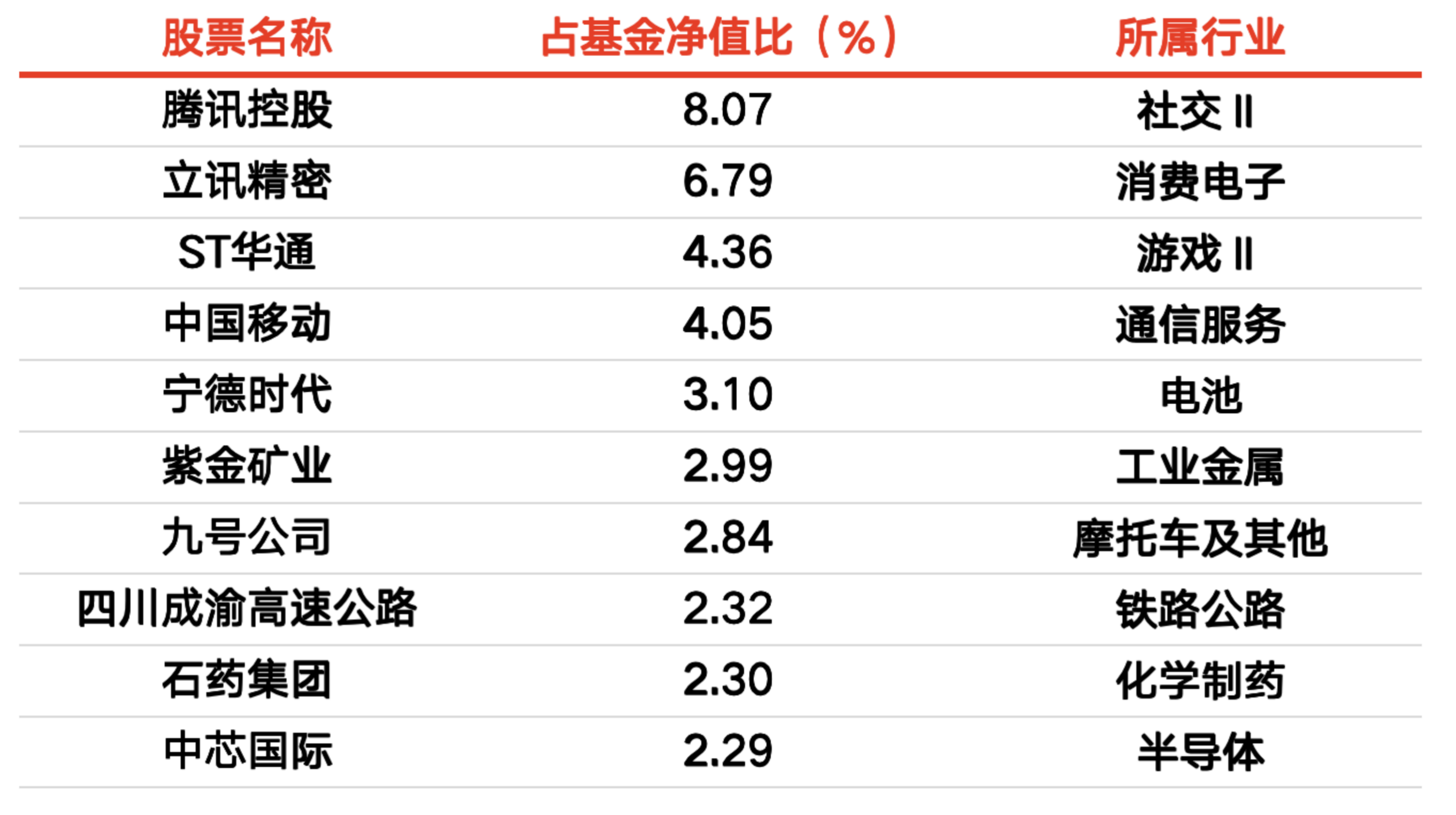 产品最新前十大持仓如下: