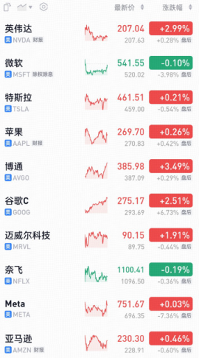 【重仓涨跌】昨日华宝纳斯达克精选前十大重仓股8涨2跌,美元兑人民币中间价↓0.02%。(重仓股涨跌情况仅供参考,不代表当前基金业绩表现,还请以每日更新的实际基金净值为准)