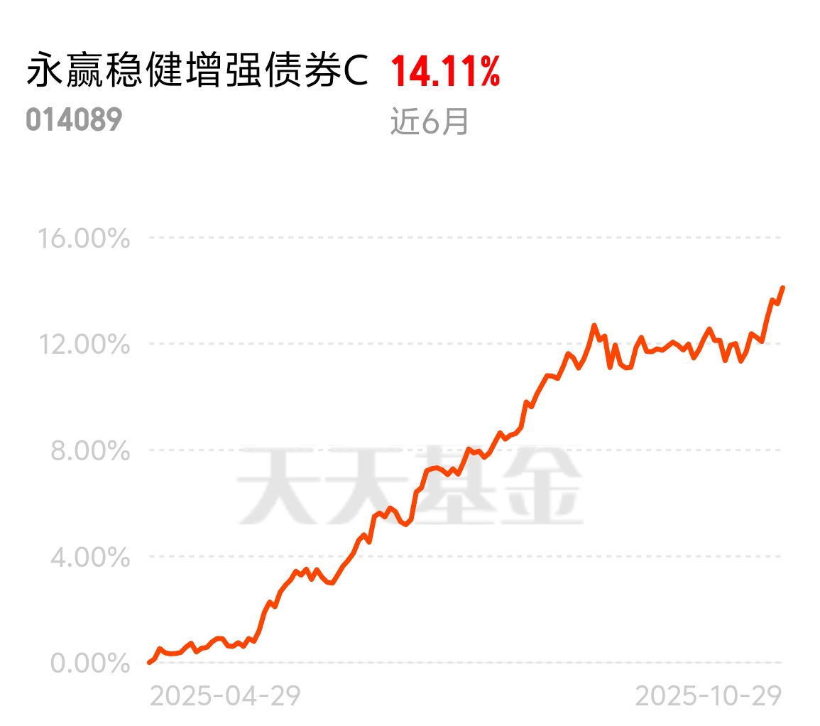 我在#美联储再次降息!12月降息与否难料# 选择了“利好大A” 最近发现一个很强势的组合,那就是权益+债券,这个组合强势的地方在于可以使用债券的稳健打底,然后再通过权益来获取更加高的收益,就比如这个永赢稳健增强,就强的可怕,昨天产蛋 53 个,最近一周更是拿下 167 个蛋啊,月产蛋高达 209 个啊,最近六个月的收益更是高达 14.11% 呀,这表现,优秀的很啊,直接吊打其他呢!$永赢稳健增强债券C$