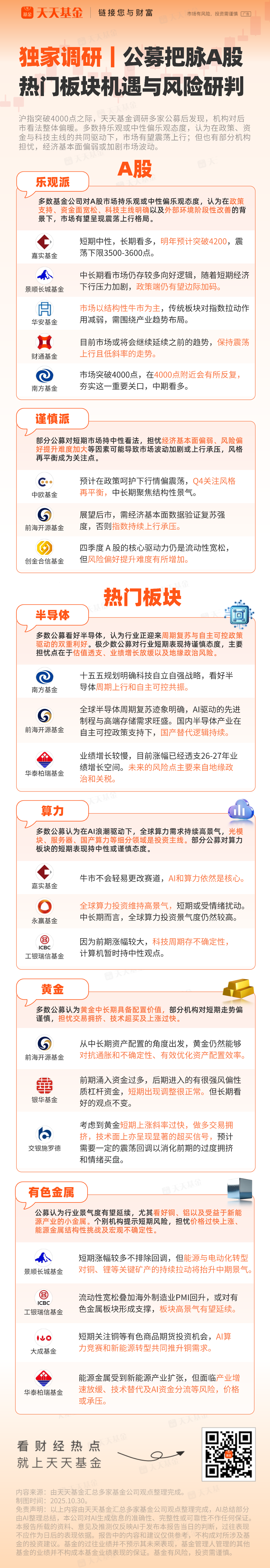 整体来看,本轮沪指站上4000点之际,公募机构在保持战略乐观的同时,也对结构性风险保持警惕。投资者在参与热门板块时,需结合估值、景气度与政策节奏,把握机会的同时防范波动。