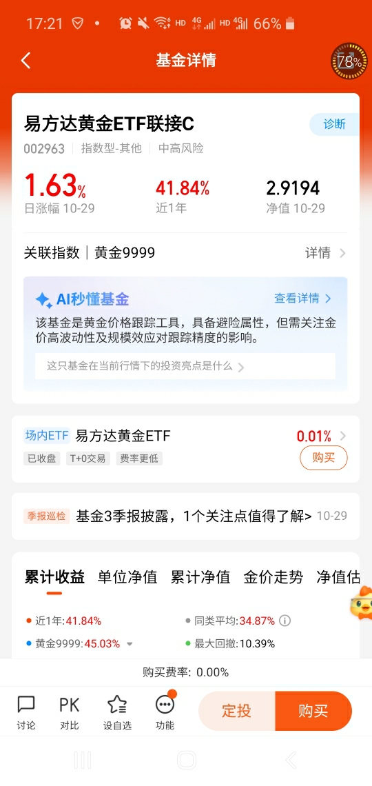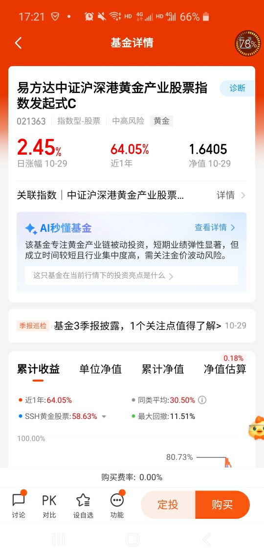 $易方达中证沪深港黄金产业股票指数发起式C(021363)$