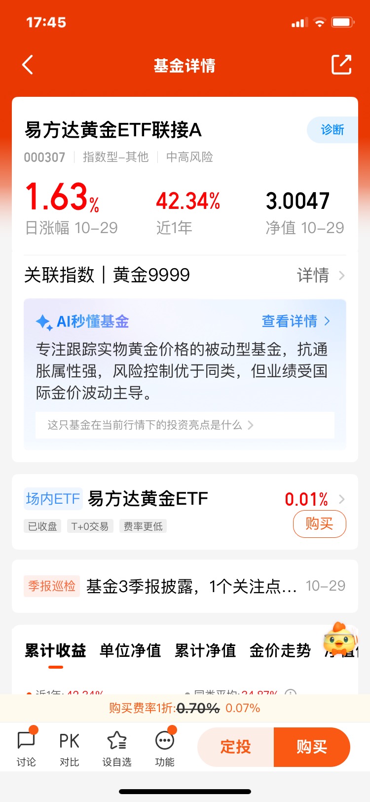 对我这样的职场人来说,投资既要把握机会,也要控制风险。选择易方达黄金ETF联接C这样的工具,既能在专业团队的管理下参与黄金投资,又能避免个股选择的风险,是比较适合普通投资者的方式。