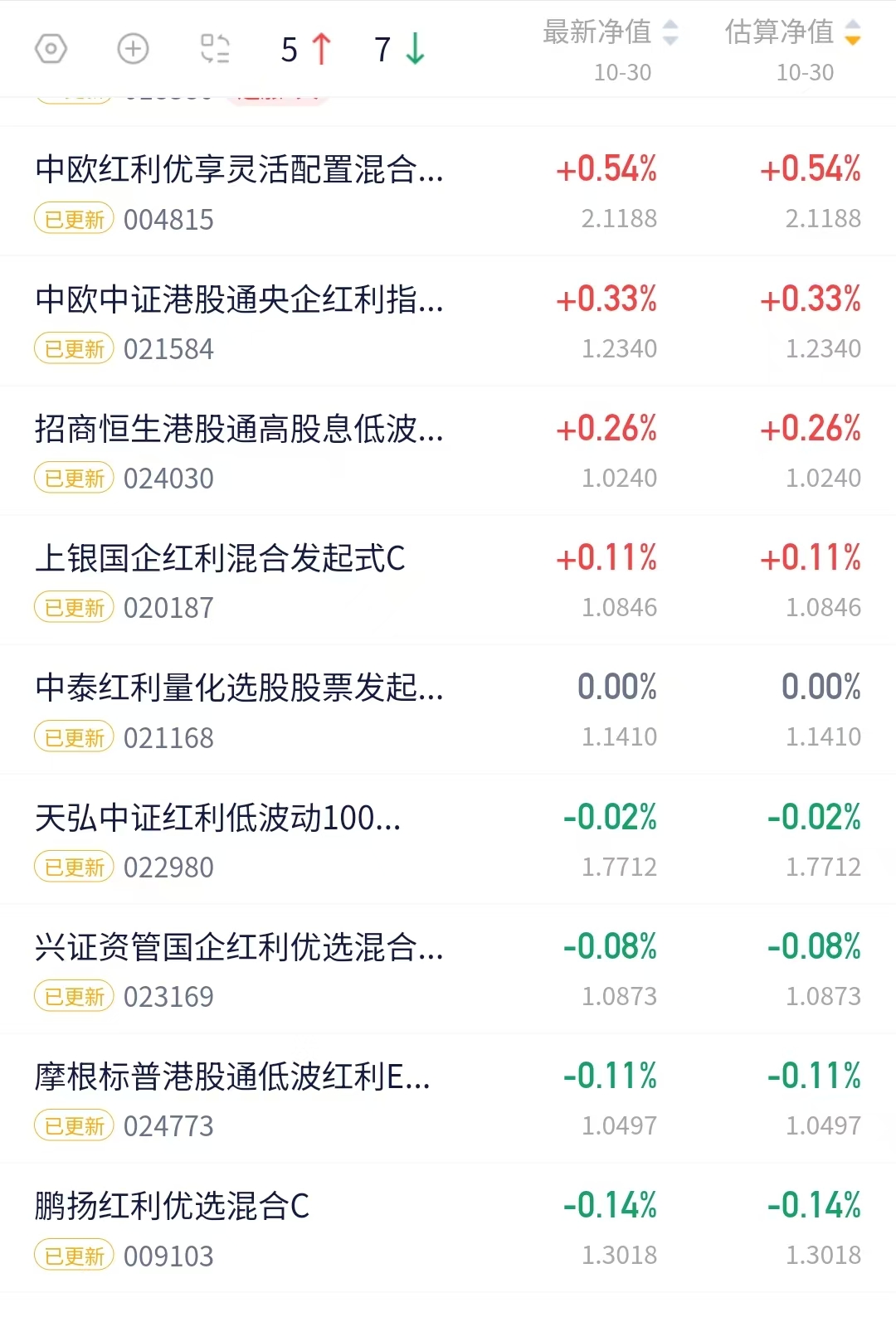 $天弘中证红利低波动100联接Y(OTCFUND|022980)$最新净值-0.02%。
