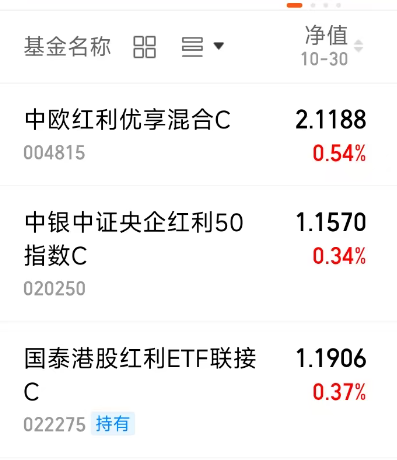 $中欧红利优享混合C(OTCFUND|004815)$+0.54%,涨幅居前